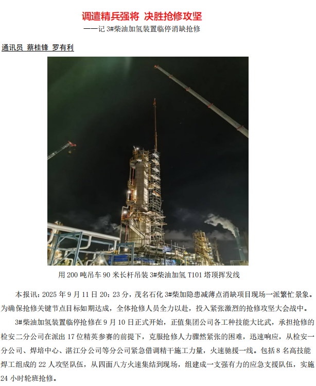 記3#柴油加氫裝置臨停消缺搶修